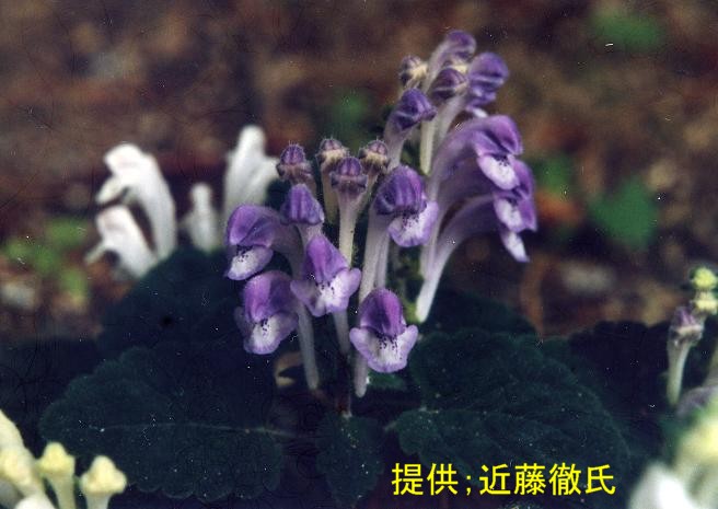 名前の如くシソの葉っぱに似たタツナミソウの意です。非常にかわいらしい紫色の花をつけます。茎の高さは20cm位です。茎は四角であるのでシソ科に間違いないでしょう。(上田)