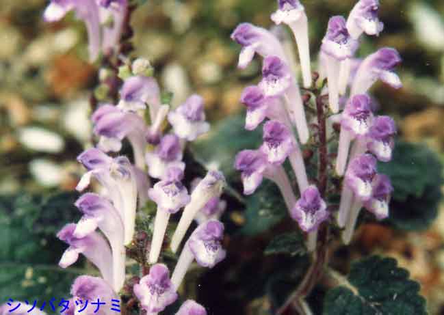 この仲間での圧巻はシソバタツナミで、シソに似た葉は葉脈と裏面が紫色で美しく、花も非常に美しいです。