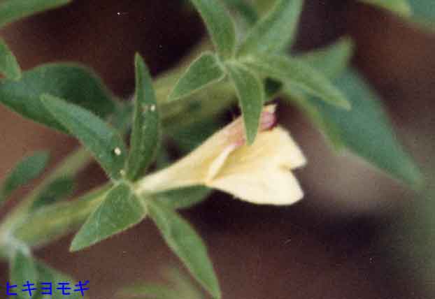 初谷川の道べりなど日当たりのよい場所に生えています。一寸見たところでは葉がヨモギに似ています。 夏から秋にかけて葉のわきに黄色い花をつけます。筒状の細長いがくがあり、10本の縦条が目立つのが特徴的です。