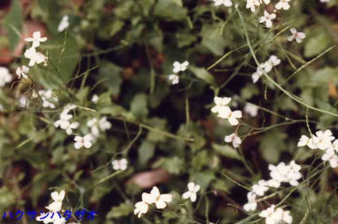ウラボシ科のヘビノネゴザと共に鉱山の指標草として有名で、この地区の鉱山跡を調査したときについでに調べたところでは、鉱山跡のある谷の入口にハクサンハタザオが多く、鉱山跡の近くにヘビノネゴザがあるというのが共通したパターンでした。