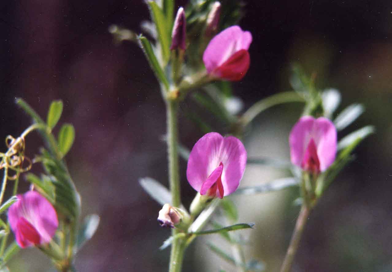 スズメノエンドウ(雀野豌豆)というのもあります。当然,雀野豌豆の方が小さいです。 群馬県では子供達はこれを「しびび」と呼ぶようですが,その意味は私にはわかりません。 小さな子達が,ままごとの食器にしびびの豌豆を一杯いれて遊んでいました。(Botanical Garden より)